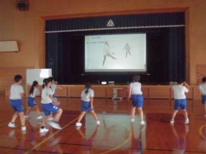 3年生、体育科の様子です。 軽快なリズムに乗って、全身で弾んで踊っています。