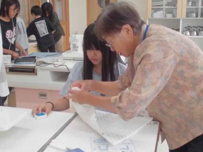 地域の家庭科ボランティアさんにご来校いただき、分からないところを優しく丁寧に教えていただきました。