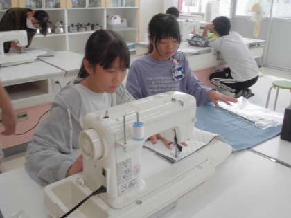 6年生、家庭科の様子です。ミシンを使った学習をしています。