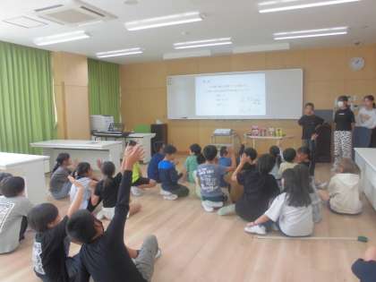 『5分後に意外な結末』や『銭天堂』などの本から、クイズが出題されました。子供たちは、クイズに熱中していました。