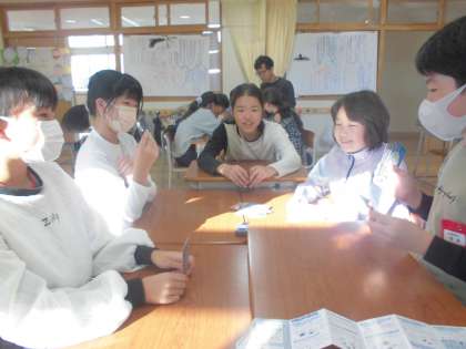 写真(下)テーブルゲームクラブは、「犯人は踊る」というカードゲームを楽しんでいます。