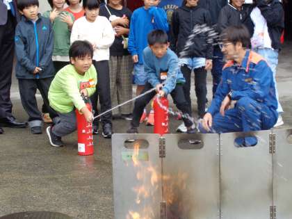 社会科見学で富山市消防局へ行ってきました。通信指令室を見せてもらい、実際に119番通報をしたり、消火器を用いて消火体験をしたりと、社会科での学習が実感と共に深められました。