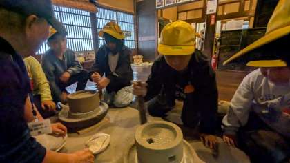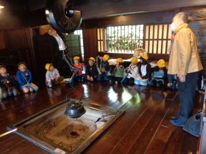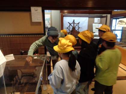 社会科見学で民俗民芸村へ行ってきました。かつての暮らしの様子や知恵に触れ、驚き、感心していました。