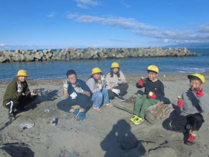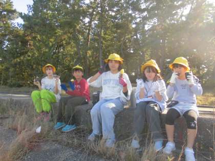 縦割り班で育て収穫したサツマイモ、それをみんなで焼いて食べる焼き芋は最高の味でした。浜黒崎海岸の景色も最高です。