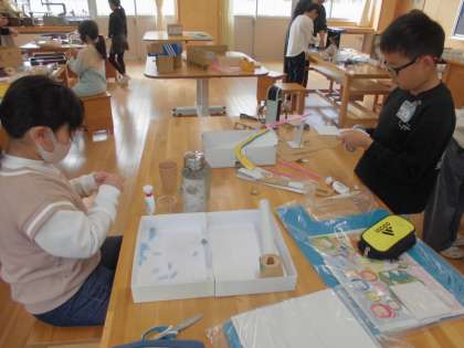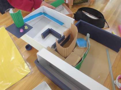ビー玉を転がして遊ぶ「コロコロガーレ」という作品を作っています。迷路やトンネルなど仕掛けを工夫してコースを作っています。