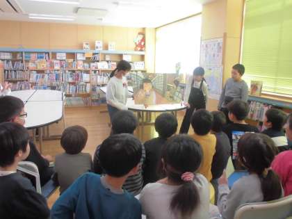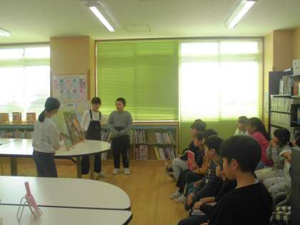 今日は、お昼休みの時間に情報委員会が読み聞かせの会を開きました。