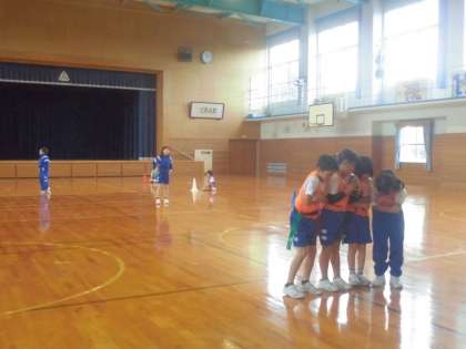 攻撃側は、チームで作戦を立ててから攻めに入ります。ボールを持っている振りをしたり、ボールを隠しながら走ったりなど様々な作戦が見られました。一方で、守備側は点を取られまいと、ボールを持っている人を見極め、上手にフラッグを取っていました。
