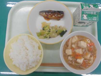11月19日(火)今日の給食 公開日 2024/11/20 更新日 2024/11/20 給食 今日の給食の献立は、 ・ごはん ・いわしの生姜味 ・白菜ひたし ・豆腐ときのこのあんかけ煮 ・牛乳 です。
