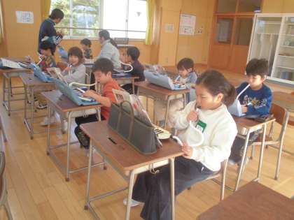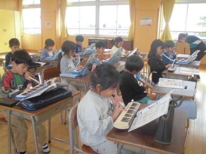 1年生、音楽「せんりつをつなげてあそぼう」です。