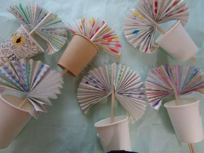 2年生は、国語科の学習で紙コップ花火を作りました。
