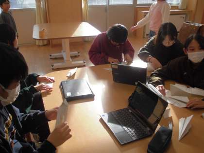 写真(上)イラスト・工作クラブは、紙飛行機を作っています。