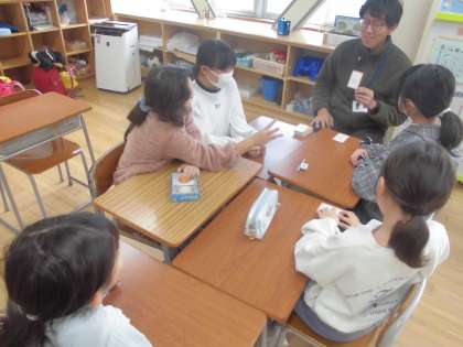 写真(下)テーブルゲームクラブは、「ウミガメのスープ」で遊んでいます。