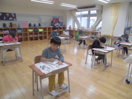 2年生は、「あさ日」という文字を硬筆墨で書いています。