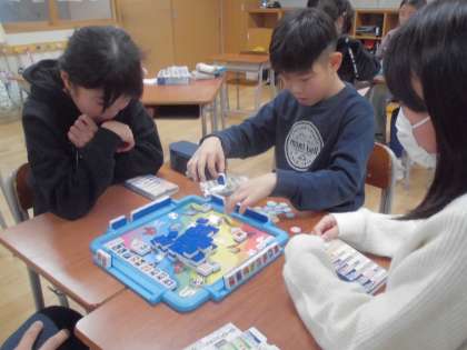 写真(下)テーブルゲームクラブは、「富山湾おさかなドンジャラ」で遊びました。