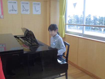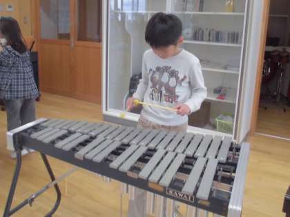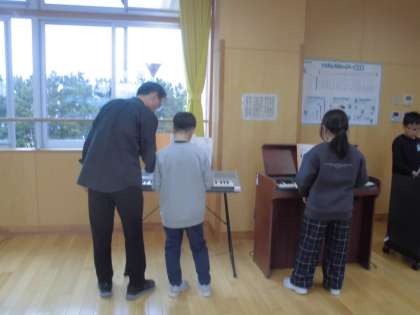 「茶色の小びん」を聴いて、旋律の特徴を確認した後、合奏に向けて各パートごとに練習しました。