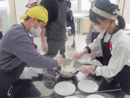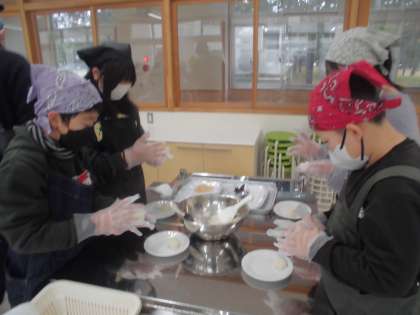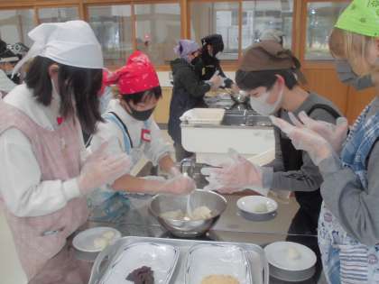 5年生は、家庭科の授業で、もち米を使っておはぎを作りました。初めて作る子供も多く、一つ一つの作業を丁寧に行っていました。とても上手に美味しく作ることができました。