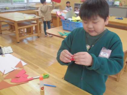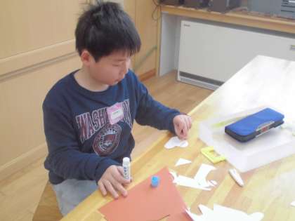 子供たちは、クリスマスオーナメントなど冬に関連した飾りをつくっています。