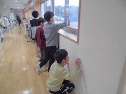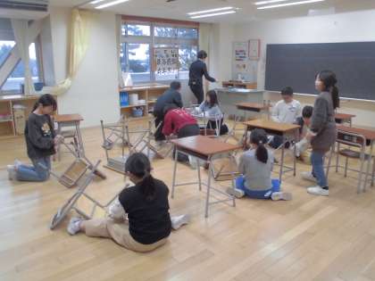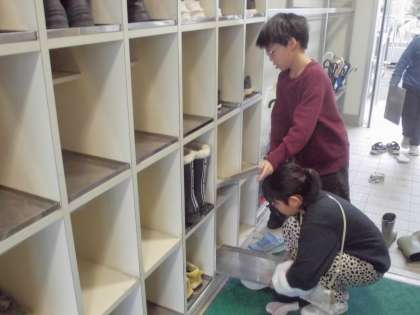 机や椅子、床やロッカーなどをきれいになるまで掃除しました。また、下駄箱の砂受け皿もピカピカにしました。