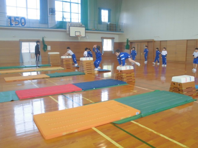 3年生、体育科の様子です。跳び箱に取り組んでいます。