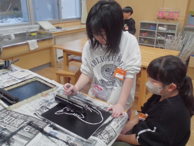 今日は、版画を刷る作業をしました。ムラが出ないようインクの量に気をつけながら、丁寧に刷りました。