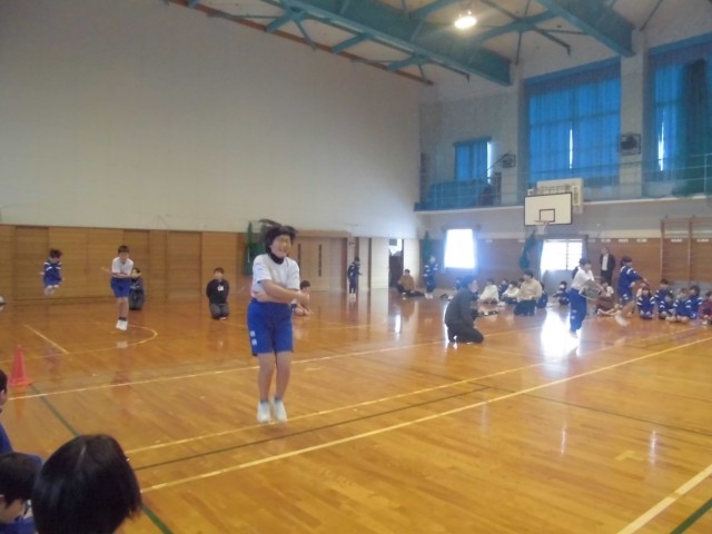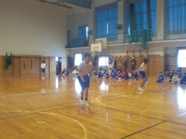 2月5日(水)短縄大会 公開日 2025/02/05 更新日 2025/02/05 はまっ子の一日 今日は、ロングわくわくタイムに短縄大会を行いました。 前跳び、後ろ跳び、あや跳び、交差跳び、二重跳びの5種目で各学年の代表選手が競い合いました。応援も気合い十分で、とても盛り上がりました。 競技後には、代表者が後ろ二重跳び、あや二重跳びの技を披露しました。子供たちからは、感嘆の声があがっていました。 +2
