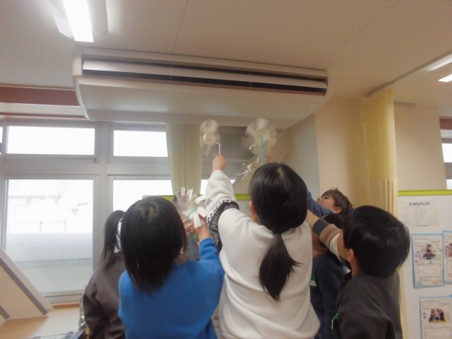 2月6日(木)かぜとあそぼう《1年生》 公開日 2025/02/06 更新日 2025/02/06 1年生 1年生、生活科の様子です。 今日は、紙コップで風車を作りました。 エアコンの風、サーキュレーターの風、外からの風など、色んな風で風車を動かして楽しんでいました。 +2
