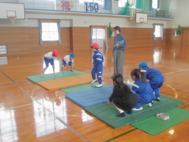 2月25日(火)授業風景《1年生》 公開日 2025/02/25 更新日 2025/02/25 1年生 1年生、体育科の様子です。 卒業を祝う会の出し物の練習をしています。マットの準備から片付けまで、テキパキと動く姿が見られました。