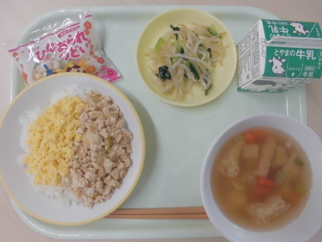 ・二色丼(ごはん、鶏そぼろ、炒り卵)