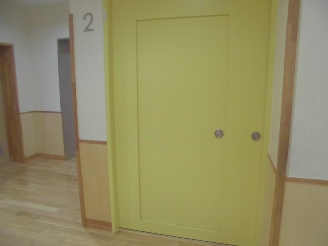 今回の避難訓練では、校内の廊下にある防火扉を閉め、実際に通り抜けてみました。