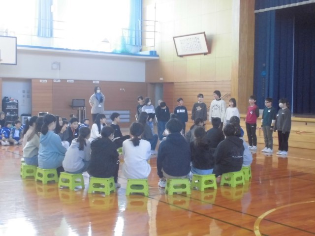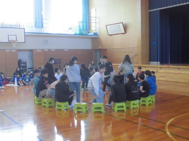 4年生は、6年生バスケットを行いました。6年生バスケットとは、フルーツバスケットの浜黒崎思い出バージョンです。「宿泊学習が楽しかった人」「1番好きな科目が体育の人」などのお題があり、最後に立っていた人には4年生がインタビューをしました。