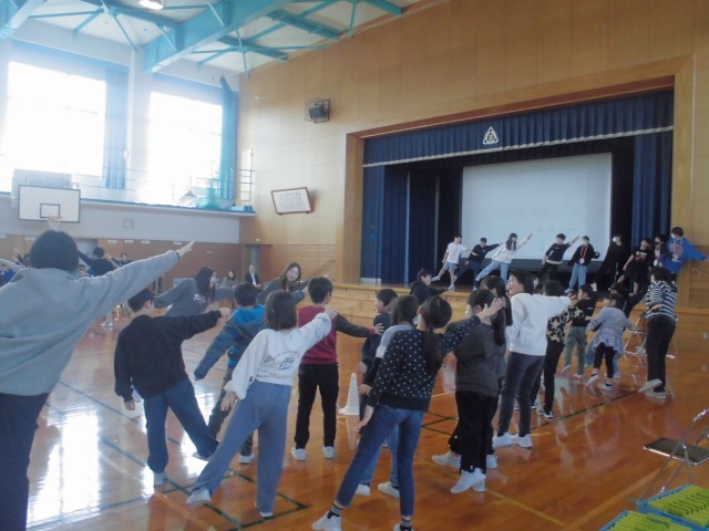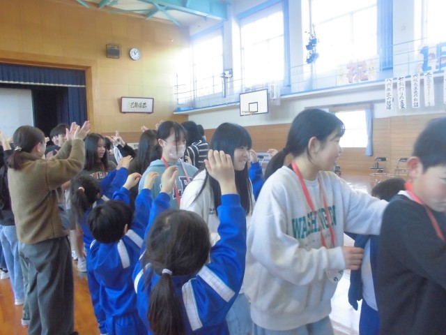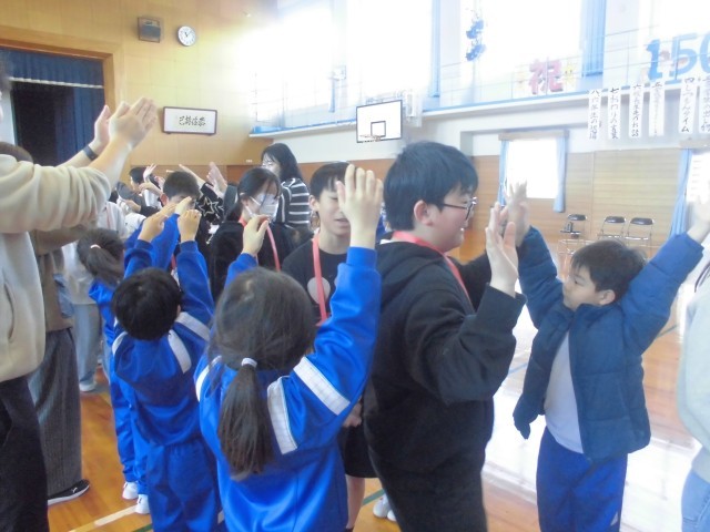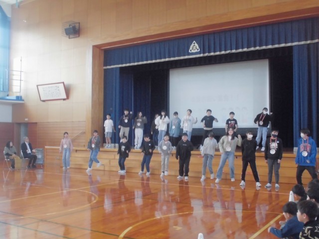 3月7日(金)卒業を祝う会7 公開日 2025/03/07 更新日 2025/03/07 はまっ子の一日 1~5年生の出し物の終了後、6年生からサプライズでダンスの披露がありました。みんなで一緒に踊り、とても盛り上がりました。 最後には、在校生と先生方によるアーチをくぐって6年生が退場しました。 6年生にたくさんのありがとうを伝えることができ、体育館全体が温かい雰囲気に包まれた素敵な集会になりました。 +3