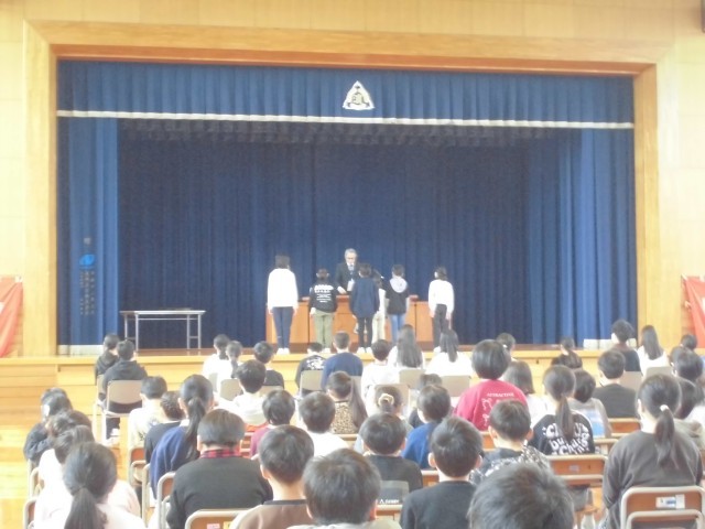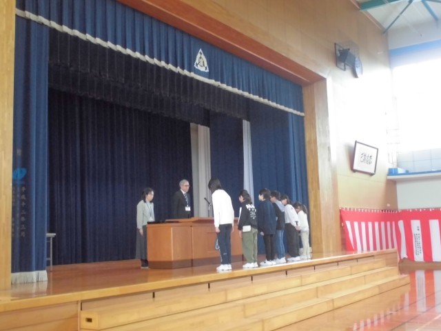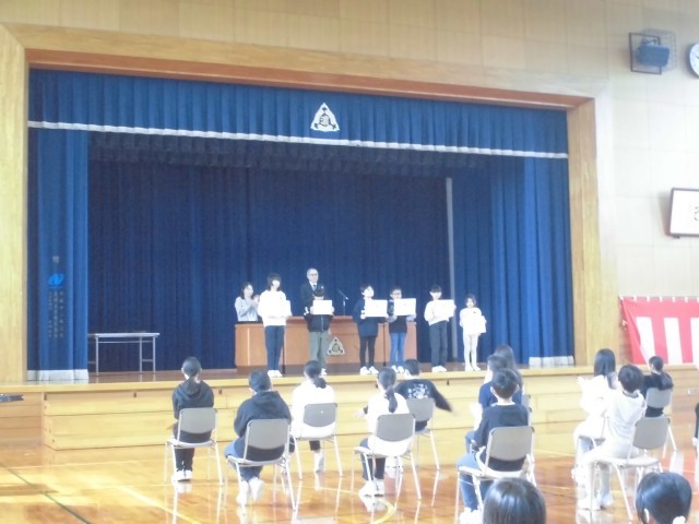 卒業式の予行の後、受賞伝達を行いました。