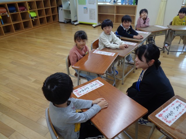 「こんにちは」と友達へ挨拶をしました。友達の目を見て挨拶をすることを意識しました。