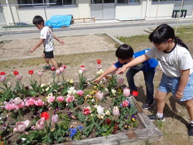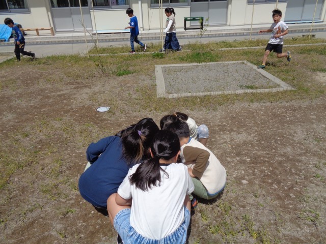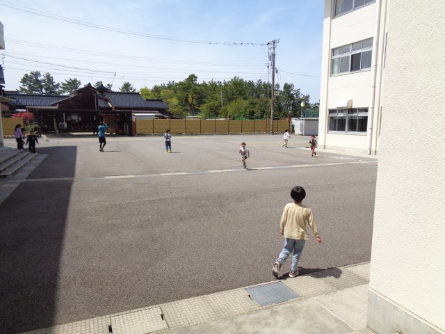 休み時間には、他の学年の友達も一緒に体を動かして遊んだり、中庭で虫を探したりして自由に遊んでいます。