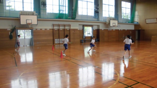 体育では、リレーの練習をしました。