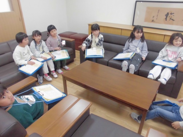 校長室に行くと、校長から名刺をもらいました。ふかふかのソファに座って、とてもうれしそうな子供たちでした。