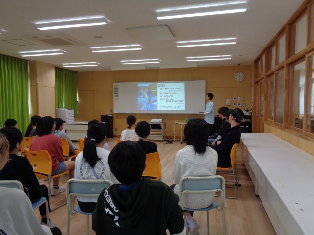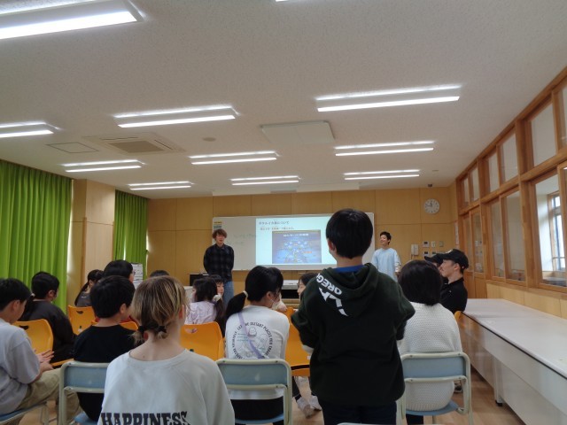 東京海洋大学の大屋さんと水橋漁民合同組合の漁師さんに来ていただき、ホタルイカのことを教えていただきました。ホタルイカの発光の仕組みや、漁の仕方など、たくさんのことを教わりました。また、漁師さんの工夫や努力のおかげで、美味しいホタルイカや魚を口にできていることも知りました。