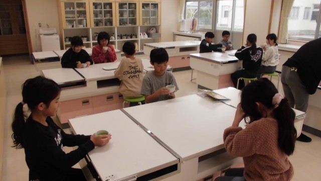 家庭科では、急須を使ってお茶をいれました。初めての体験でしたが、楽しめたようです。