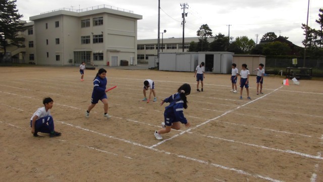 体育では、リレーの練習に力を入れています。なんと今日は赤・青団ともに新記録を達成! 練習や作戦の成果が表れてきました。