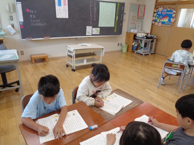 国語科では、「たんぽぽのちえ」の学習をしています。教科書の内容から知恵を見つけ、授業の最後に実際にたんぽぽの観察をしました。