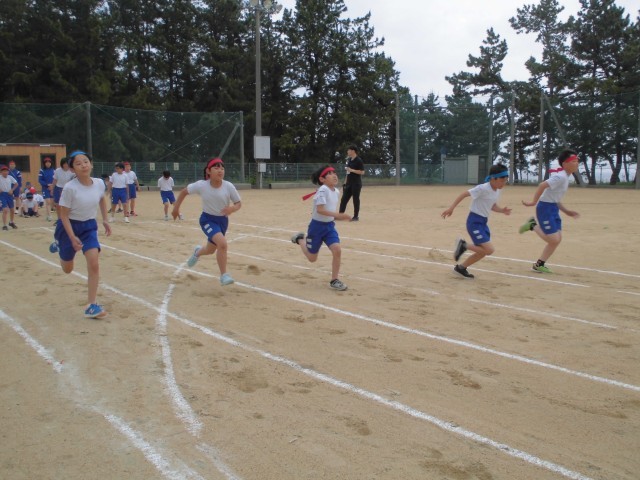 子供たちはピストルの音をよく聞いて、フライングをしないよう気をつけながら、全力でスタートをきっていました。