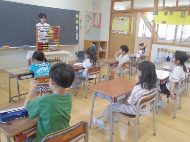 今日は、100玉そろばんを使って、視覚的に足し算を学びました。