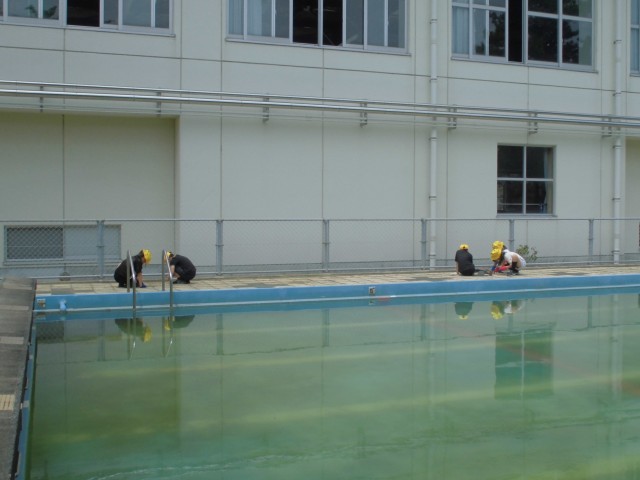 6月23日のプール開きに向けて、プールサイドの清掃を行いました。