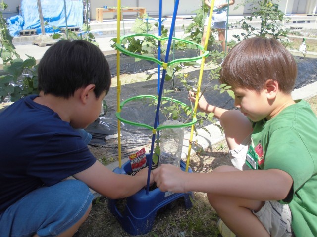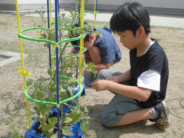 6月12日(木) 2年生 生活科 公開日 2025/06/12 更新日 2025/06/12 2年生 2年生は、生活科の授業で野菜を育てています。 今日は、野菜の茎を支柱に結んだり、肥料をあげたりして野菜のお世話をしました。 野菜にも実がつき始め、その成長を喜ぶ2年生でした。 +3