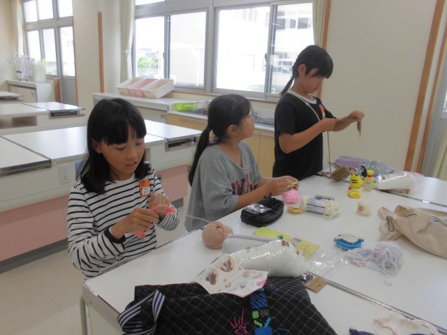 今日のクラブ活動では、裁縫をしたり、毛糸でポンポンを作ったりしました。