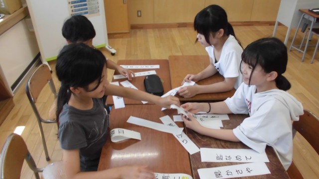 国語科では、俳句の学習をしました。パズルのように言葉を組み合せながら、五・七・五のリズムを感じていました。