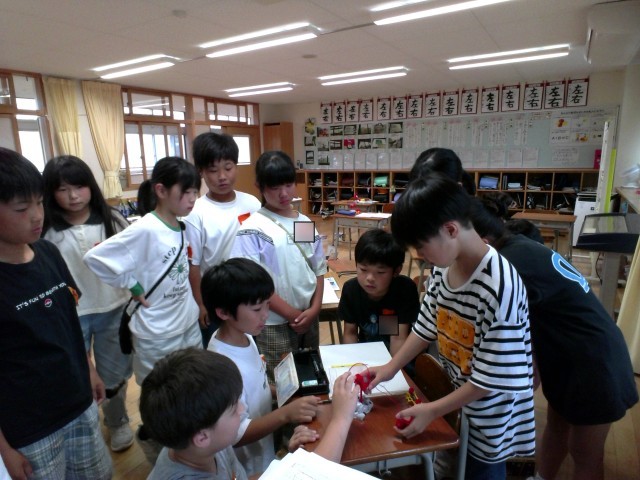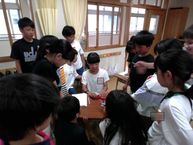 実験の後のそれぞれの気付きを共有し話し合うことで、電池の向き(+と-)を変えることで、電流の流れる向きが変わり、それにともなってモーターの回転の向きも変わることが分かりました。実験や話し合いを経て学びを深めています