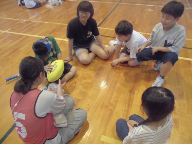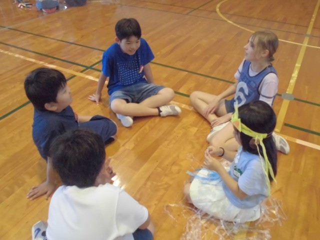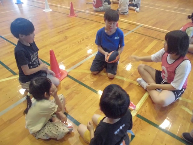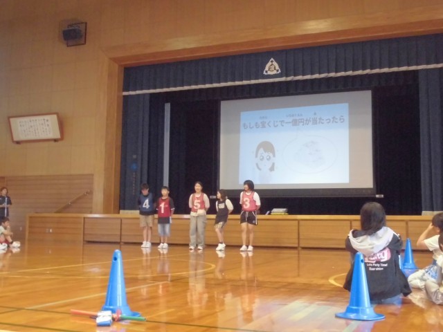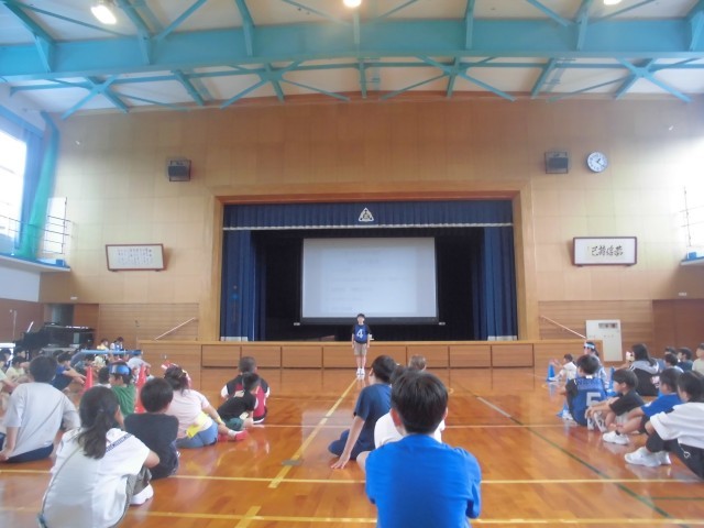 集会では、はじめに縦割り班遊びをしました。縦割り班で、もしもトーク、爆弾ゲームをして遊び、お互いのことを知り、仲を深めることができました。