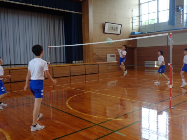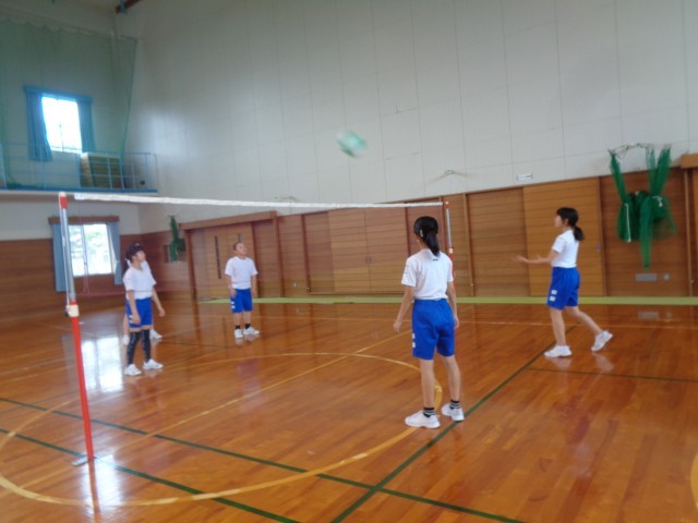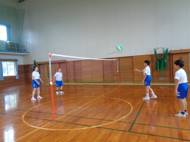体育ではソフトバレーボールをしています。少しずつチームでボールが繋がるようになってきました。