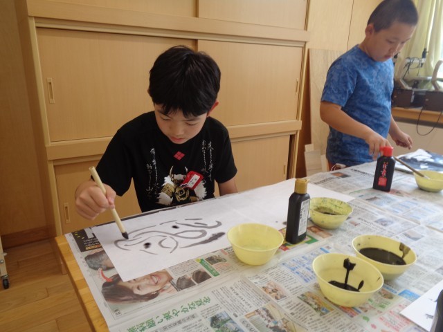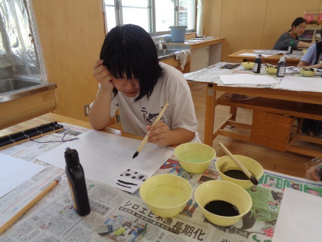 図工では、「墨と水で広がる世界」の学習をしました。水の量を工夫したり、紙の表面のざらつきを利用したりして、様々な表現を試しました。